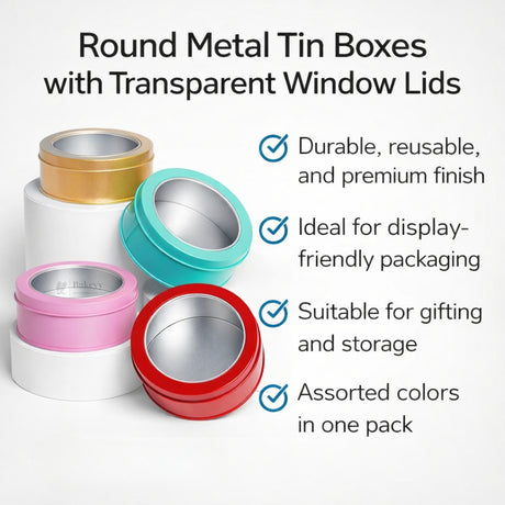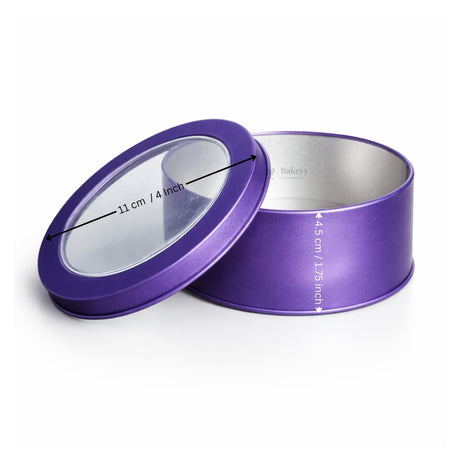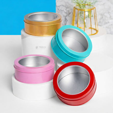 Round Metal Tin Box with Transparent Lid | Assorted Colors | Multipurpose Storage | Pack of 4