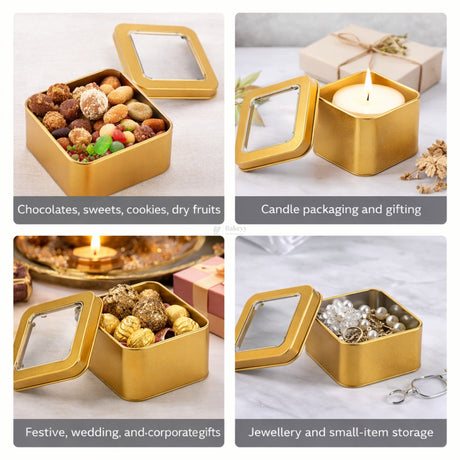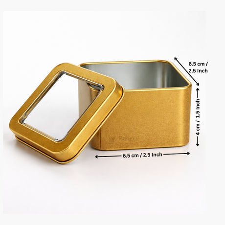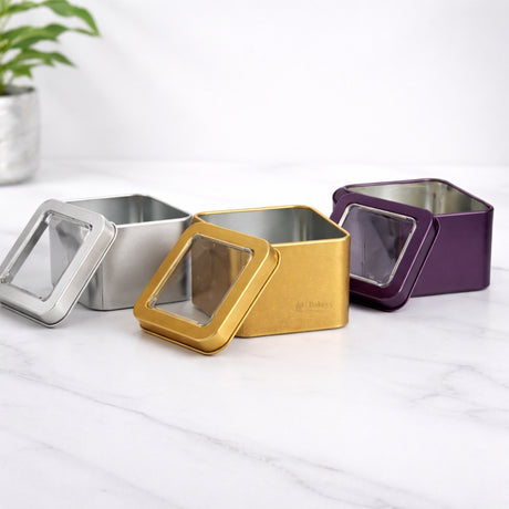 Square Tin Box with Transparent Window Lid | Random Colors | Chocolates & Keepsakes | Pack of 12