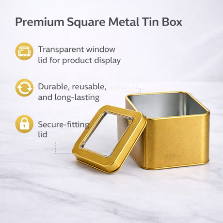 Square Metal Tin Box | Multi-Purpose Storage Tin | Candle, Gift & Storage Use | Pack of 12