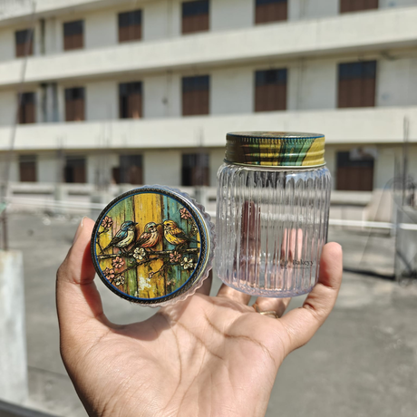 Rs. 160.00Rs. 180.00Unit price /UnavailableLow stock (4 units)Vintage Bird & Floral Metal Tin Box with 3 Acrylic Jars | Pack of 1