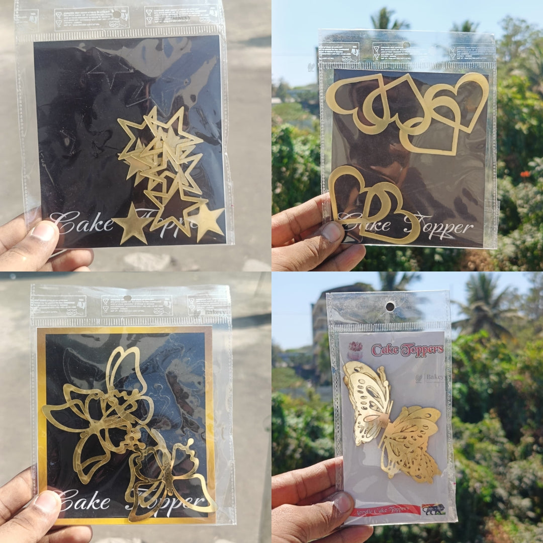 Gold Metallic Cake Topper Cutouts Set | Assorted Designs for Cake Decoration | Pack of 1