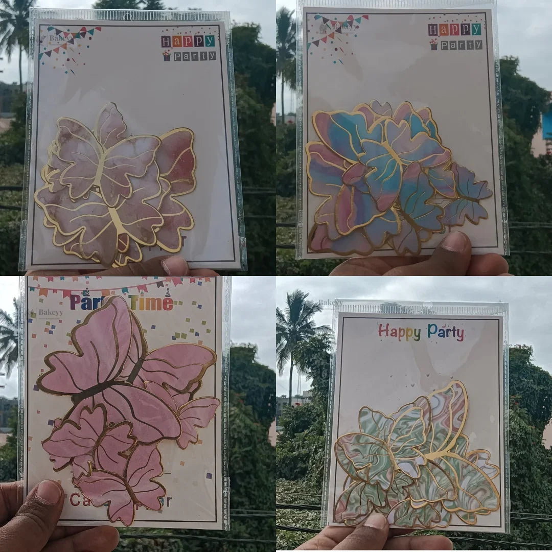 Golden-Embossed Blush Butterfly Toppers | Multiple Design Options Available | Premium Finish | Pack of 10