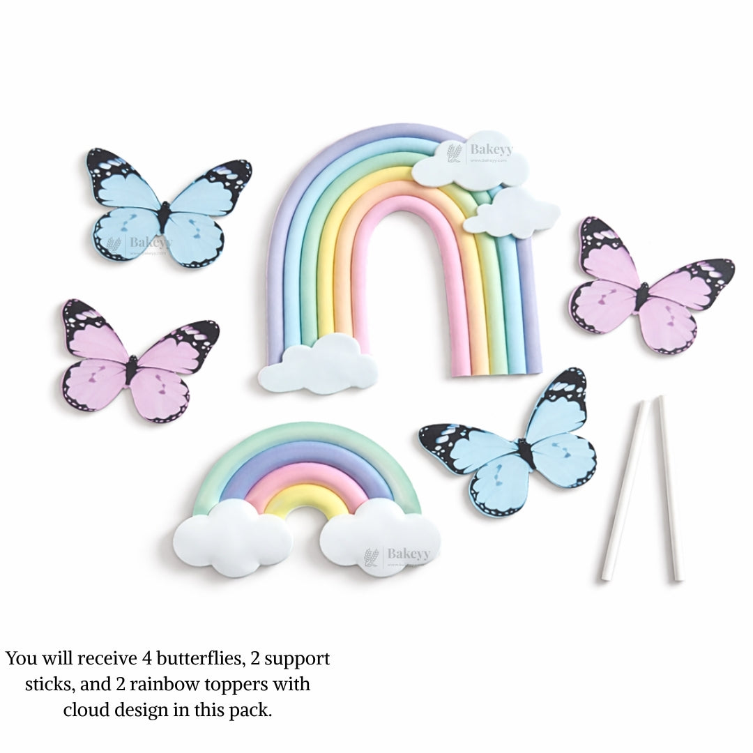 Rainbow Arch & Butterfly Cake Topper Set | Paper Topper | Cloud Rainbow & Butterfly Decorations for Cakes | Multiple Designs Available | Pack of 1