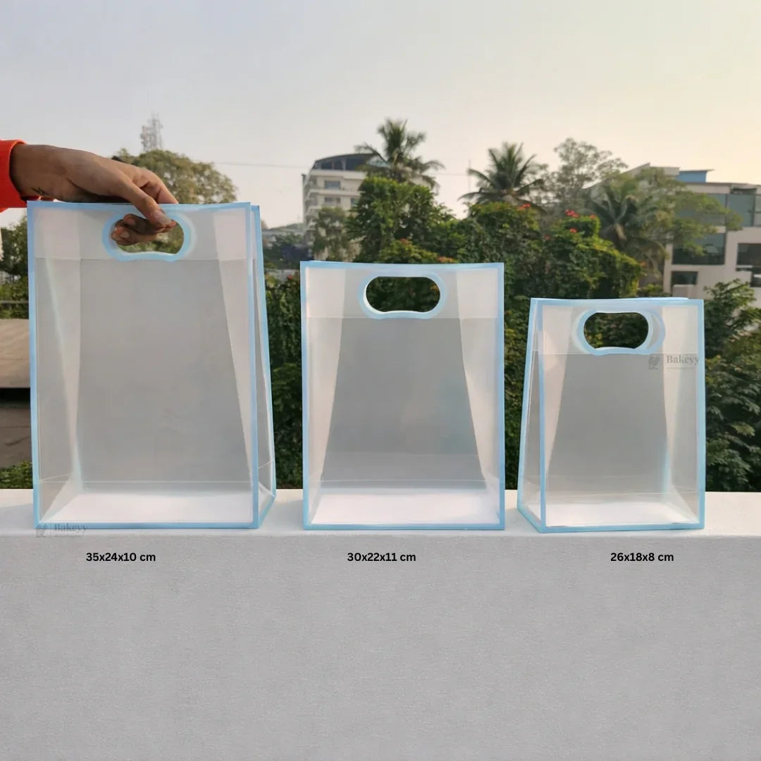Transparent Gift Bag - Light Blue | Oval‑Cut Handle| Pack Of 12