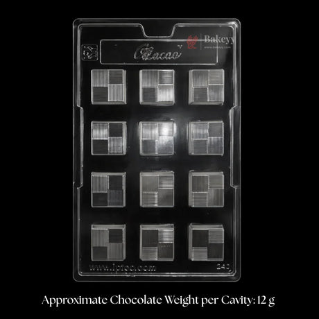 Mould 240 | Square Grid Texture Chocolate Mould | 12 Cavity | Pack of 1