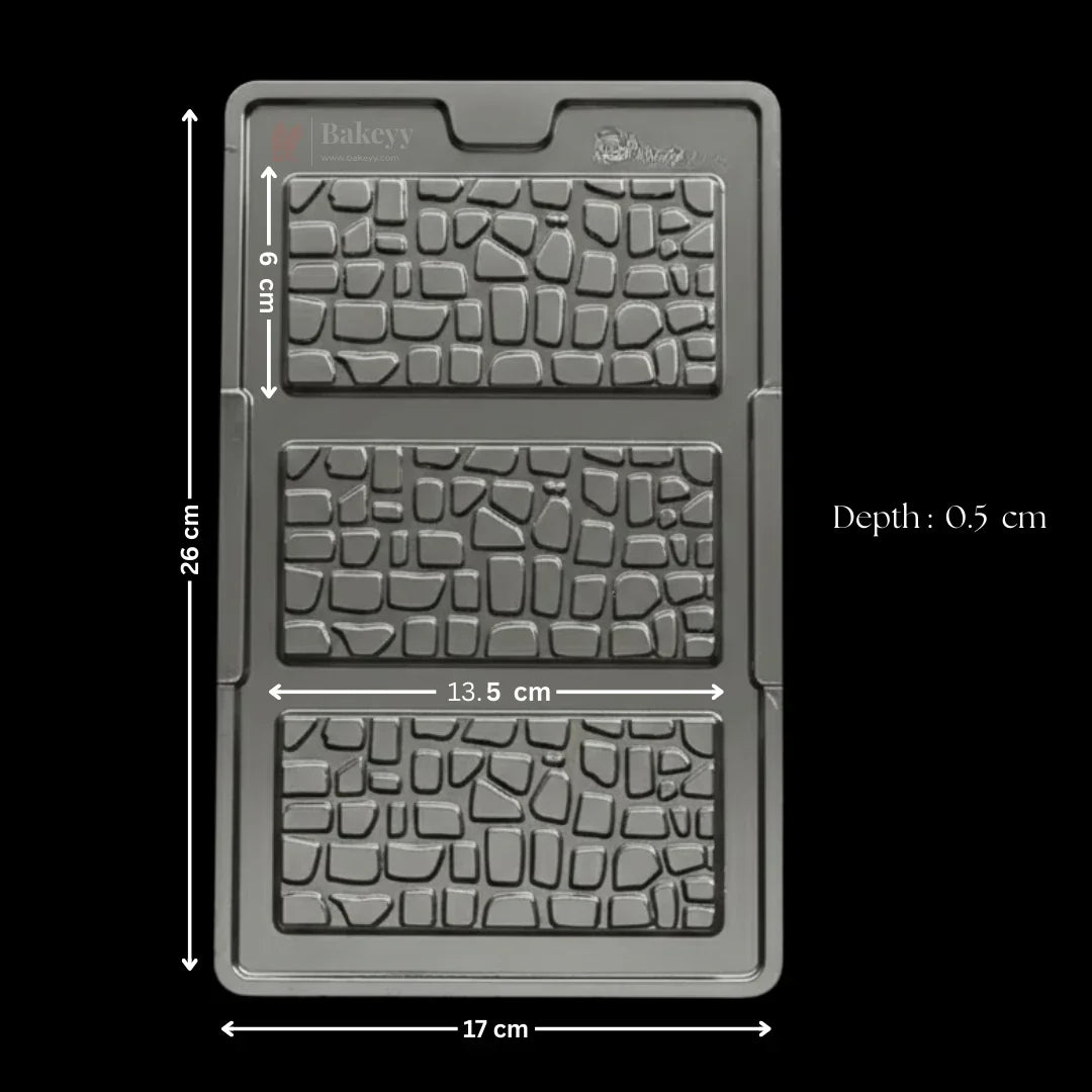Mould 496-Cracked Stone Bar Chocolate Mould Tray | 3 Cavity | Party Favor Mould | Pack of 1