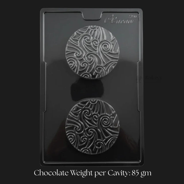 Mould 631 | Round Florentine Chocolate Mould | Embossed Swirl Designer Chocolate | 2 Cavity | Pack of 1