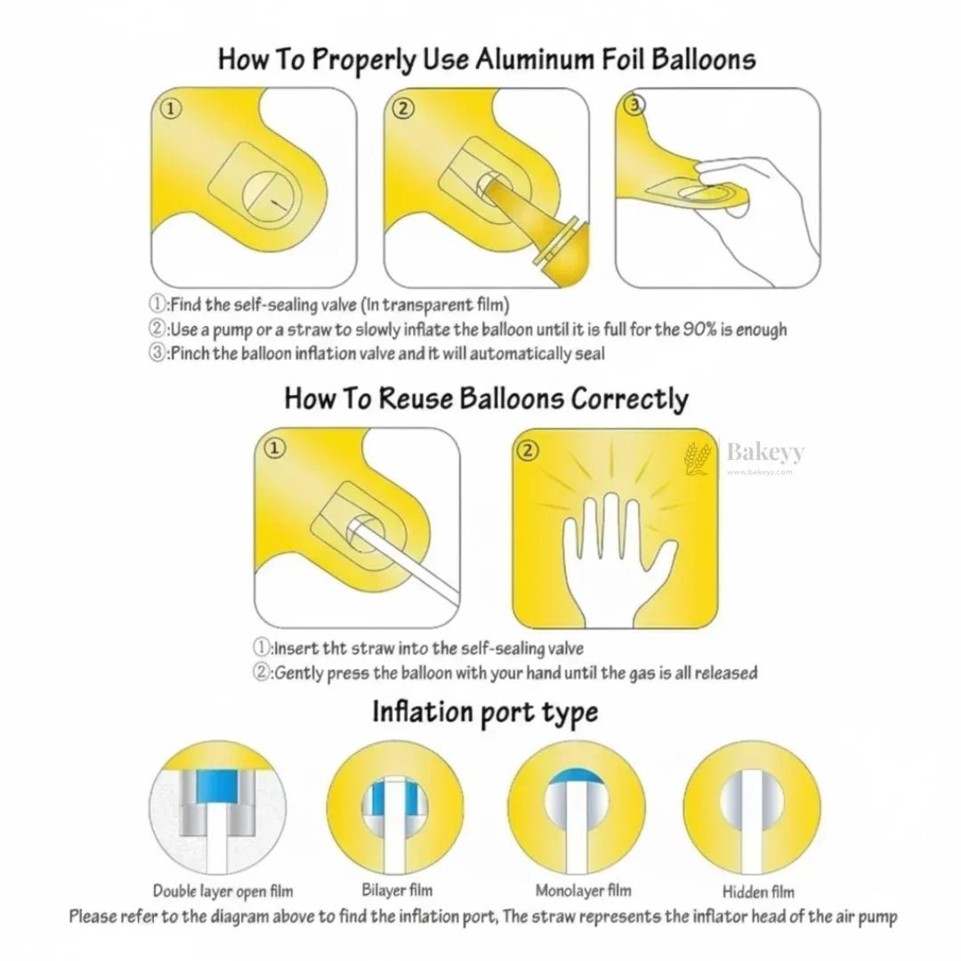- Use air pump or helium for inflation