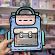 A trendy and fun cartoon-style zip lock pouch designed in the shape of a backpack. With its vibrant blue, pastel pink, and mint green tones, this pouch is perfect for storing small stationery, candies, cosmetics, or gifting essentials. The bold black outlines give it a 3D animated look, making it stand out on display or in hampers. Durable and reusable, this pouch adds a cute and quirky element to your packaging.