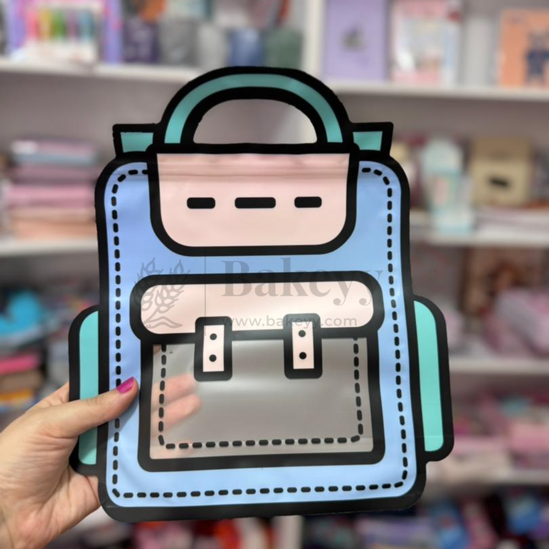 Cartoon Backpack Zip Lock Pouch | Blue | Treat Storge Bag for Birthday | Fancy Zip lock pouches | Pack of 50