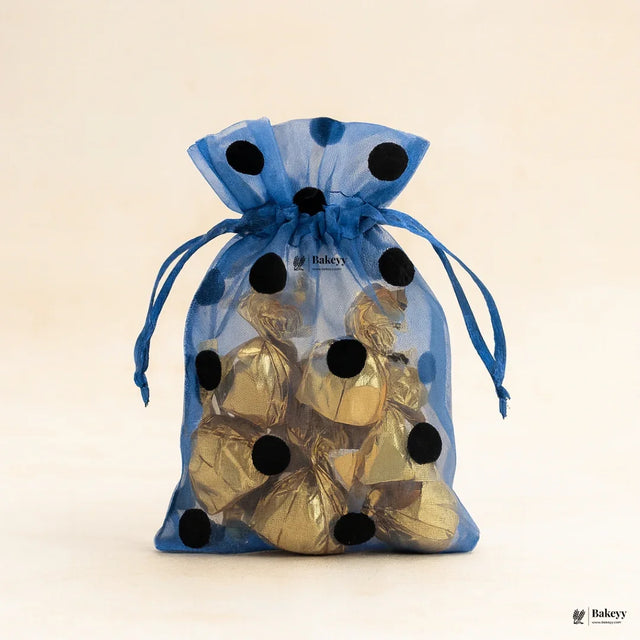 10x14 CM | Blue Polka Dot Organza Potli Bags | Pack of 100
