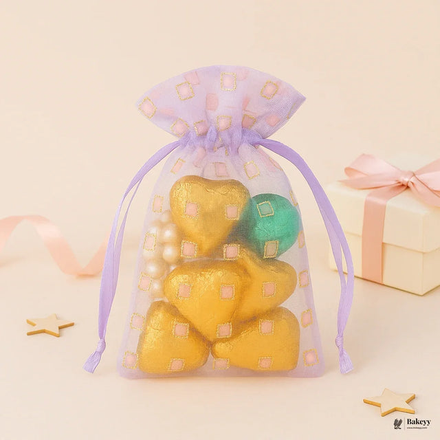 10x14 CM | Purple Square Dot Organza Potli Bags | Pack of 100