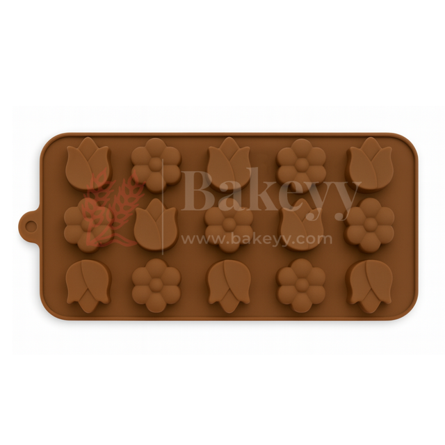 15-Cavity | Tulip and Daisy Shape Silicone Chocolate Mold | Non-Stick Baking & Candy Making Tray | 1 Piece