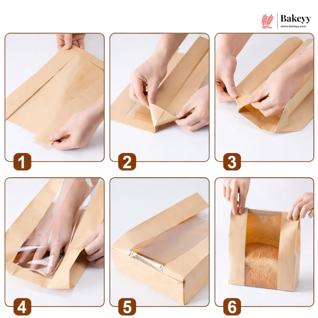 Present and preserve your fresh bakes in style with this White Kraft Bread Pouch. Made with premium food-grade kraft paper and featuring a transparent window, it combines durability, eco-friendliness, and an elegant look. Perfect for breads, buns, cookies, or other baked treats, these pouches give your packaging a professional touch.