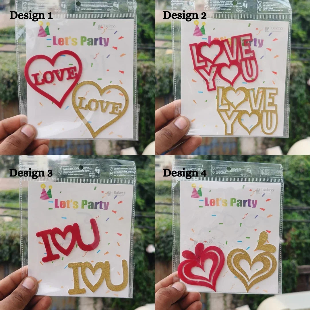 Love Theme Acrylic Cake Toppers & Party Decor Set | Assorted Romantic Designs for Cakes, Cupcakes & Desserts | DIY Love theme toppers | Pack of 1